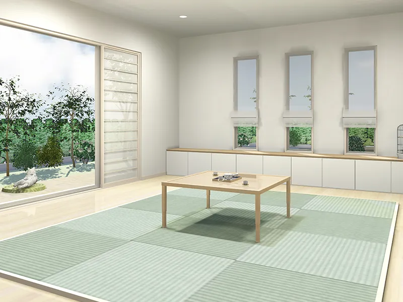 畳のラインがすっきりと見え、自然と広々とした印象に。
